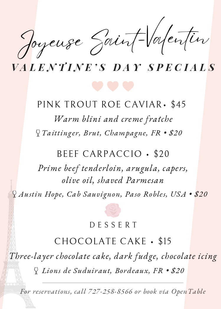 Bacchus Wine Bistro is a relaxed oasis of Old World charm nestled within St. Pete’s expanding modernity. Our seasonally changing menu offers something for everyone - including classic dishes like French Onion Soup and Foie Gras Torchon, alongside contemporary options such as Tuna carpaccio and Tartare de Boeuf. We are also known for our lavish Charcuterie boards with the highest quality meat and cheese options from all over the world. The wine library, watched over by the famed Vitale Bros’ Bacchus mural, boasts nearly 100 Sommelier curated selections from France, Italy, Spain, the US, and other notable countries. We also offer several delicious imported beer selections, curated wine-based cocktails and a hospitality experience you will never forget! Join us today!